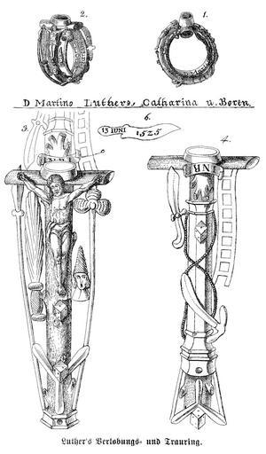 Keywords: Die Gartenlaube (1872) b 667.jpg 667 668 de Luther ™s Verlobungs- und Trauring <br />Bild von Seite 667 der Zeitschrift Die Gartenlaube 1872 Image from page 387 of journal Die Gartenlaube 1872 Wedding rings Katharina von Bora Luther family