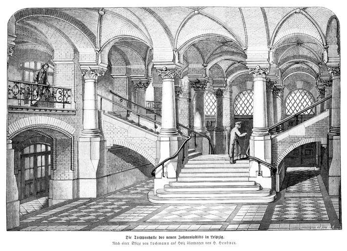 Keywords: Die Gartenlaube (1872) b 527.jpg BER Der Name wird im Kleinen Briefkasten in Heft 37 berichtigt Vorlage Lochmann auf Holz übertragen von H Heubner 527 528 1872 in Leipzig Staircases in Leipzig Johannisstift Leipzig Drawings of staircases