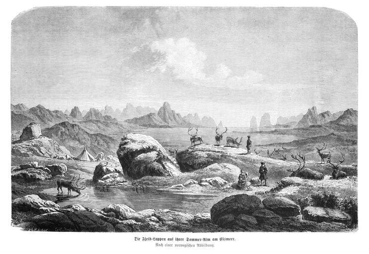 | Keywords: Die Gartenlaube (1874) b 631.jpg Die Fjeld-Lappen auf ihrer Sommer-Alm am Eismeer Nach einer norwegischen Abbildung <br />Bild von Seite 631 der Zeitschrift Die Gartenlaube 1874 Image from page 631 of book Die Gartenlaube 1874 Sami people in art Reindeer in art |