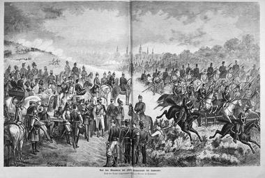 | Keywords: Die Gartenlaube (1874) b 826.jpg 826 827 de Aus den Manövern des zehnten Armeecorps bei Hannover Nach der Natur aufgenommen von Carl Grote in Hannover <br />Bild von den Seiten 826 und 827 der Zeitschrift Die Gartenlaube 1874 Image from pages 826 and 827 of book Die Gartenlaube 1874 PD-old-100-1923 1874 in Hannover Military people of the German Empire Military exercises of Germany Xth Army Corps German Empire 1874 19th-century military exercises Kronsberg Hannover 1874 Carl Grote ImageNote 1 2803 1945 263 298 5536 3730 2 Albrecht von Preußen ImageNoteEnd 1 ImageNote 2 1412 1599 131 159 5536 3730 2 Friedrich Karl von Preußen ImageNoteEnd 2 ImageNote 3 1107 1599 304 242 5536 3730 2 Friedrich III ImageNoteEnd 3 ImageNote 4 1557 1605 263 408 5536 3730 2 Victoria von Großbritannien und Irland ImageNoteEnd 4 |