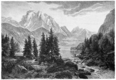Keywords: Die Gartenlaube (1876) b 735.jpg Der Raibler See mit den Dolomiten in Kärnten Nach dem Oelbilde von Karl Hummel 1821 “1906 deutscher Landschaftsmaler 735 736 Richard PĂĽttner
