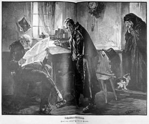 Keywords: Die Gartenlaube (1887) b 440.jpg 440 441 Males writing in art Men reading in art Newspaper readers Crying in art
