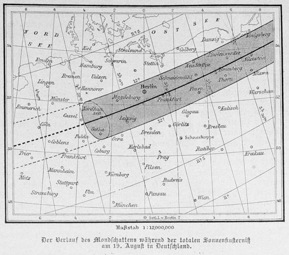 Keywords: Die Gartenlaube (1887) b 511.jpg 510 511 ImageNote 1 158 987 918 72 1218 1077 2 Der Verlauf des Mondschattens während der totalen Sonnenfinsterniß am 19 August in Deutschland ImageNoteEnd 1 Solar eclipse of 1887 August 19 Solar eclipse map 19th-century maps of Germany |