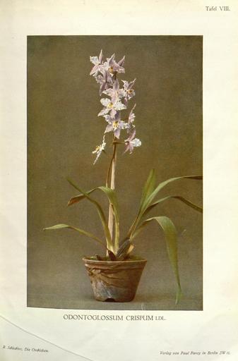 | Keywords: Die Orchideen (Tafel VIII) (8579069605).jpg Tafel VIII <br> -V <br> ODONTOGLOSSUM CRISPUM LDL <br> ' t r DU Ordiideen <br> Veriag von Paul Parey in Berfin 5 W ' iL 32404194 100868 46623 Tafel VIII Text http //www biodiversitylibrary org/page/32404194 1915 10 5962/bhl title 46623 Schlechter Rudolf NameFound Odontoglossum crispum NameConfirmed Odontoglossum crispum EOLID 1136969 NameBankID 5882704 Biodiversity Heritage Library Die Orchideen ihre Beschreibung Kultur und Züchtung Handbuch für Orchideenliebhaber Züchter und Botaniker Orchidaceae Orchidaceae culture Missouri Botanical Garden Peter H Raven Library bhl page 32404194 dc identifier http //biodiversitylibrary org/page/32404194 missouri botanical garden peter h raven library Information field Flickr posted date ISOdate 2013-03-22 CC-BY-2 0 BioDivLibrary https //flickr com/photos/61021753 N02/8579069605 2015-08-30 03 53 11 cc-by-2 0 PD-old-70-1923 Rudolf Schlechter - Die Orchideen - 1 Auflage 1915 Oncidium alexandrae Photos uploaded from Flickr by Fæ using a script |