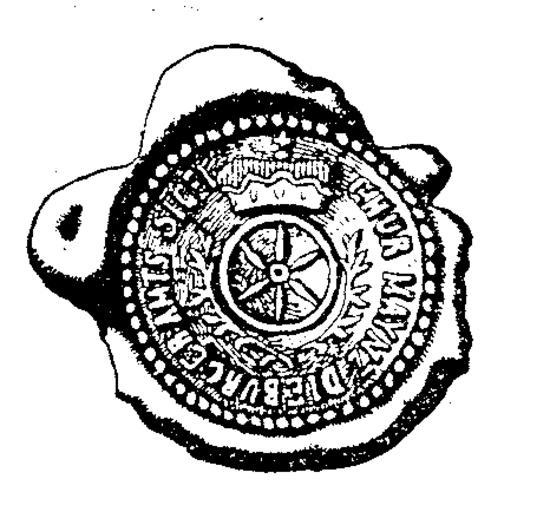 Keywords: Dieburger Siegel 4.png Das Siegel vom Amt Dieburg führte wie alle Kurmainzer Behörden ein rotes Rad in silbernem Feld à ber dem Rad wird der Kurhut gezeigt Die Inschrift lautet Chur Mannz Dieburger Amts Siegel Es stammt aus dem 18 Jahrhundert PD-old Dieburg Seals from Hesse Wheel of Mainz in heraldry |