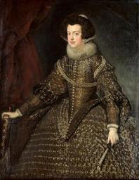Keywords: Diego Velázquez 069.jpg Artwork Creator Diego Velázquez de Königin Isabella von Spanien 1602-1644 1632 oil on canvas de die Ecken ergänzt 132 x 101 5 cm Institution Kunsthistorisches Museum de Inv -Nr GG_2129 Provenienz Alter Kaiserlicher Besitz Abgebildete Person Isabelle de Henri IV de Bourbon http //bilddatenbank khm at/viewArtefact id 2022 Other versions <gallery>File Retrato de la reina Isabel de Borbón by Diego Velázquez jpg</gallery> PD-old-100 DEFAULTSORT 1632; Elisabeth of France Viena Paintings by Diego Velázquez in the Kunsthistorisches Museum Elisabeth of France by Velazquez 1632 paintings 17th-century oil portraits of standing women at three-quarter length 17th-century portrait paintings in the Kunsthistorisches Museum Chairs in portraits Drapery in portrait paintings Farthingales Portrait paintings of Queens Portrait paintings of standing women Portraits of queens of Spain Portraits with fans Ruffs in art female 1630s portrait paintings