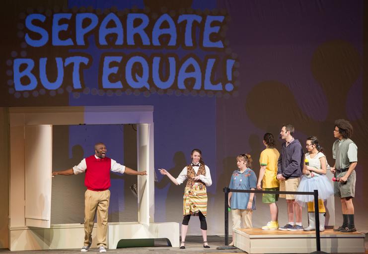 Keywords: lbj library lbjlibrary austin texas lyndon johnson lyndonjohnson president tx usa indoor Pollyanna Theatre Company, a resident theatrical company of the Long Center for Performing Arts in Austin, revived its highly successful 2014 inaugural run of the civil rights-focused play, Liberty! Equality! And Fireworks! by Gregory S. Perrin for a performance at the LBJ Presidential Library on Thursday, February 18, 2016. The special production was free, open to the public, and performed in the LBJ Auditorium. Liberty! Equality! And Fireworks! is set in a history museum. The play's characters, a group of 4th grade students (portrayed by adult professional actors), learn about the U.S. civil rights movement when legendary images from the 1960s come to life and talk to the children. These characters entertain and enlighten, taking children on a fascinating journey through history. LBJ Library photo by Jay Godwin 02/18/2016 Pollyanna Theatre Company, a resident theatrical company of the Long Center for Performing Arts in Austin, revived its highly successful 2014 inaugural run of the civil rights-focused play, Liberty! Equality! And Fireworks! by Gregory S. Perrin for a performance at the LBJ Presidential Library on Thursday, February 18, 2016. The special production was free, open to the public, and performed in the LBJ Auditorium. Liberty! Equality! And Fireworks! is set in a history museum. The play's characters, a group of 4th grade students (portrayed by adult professional actors), learn about the U.S. civil rights movement when legendary images from the 1960s come to life and talk to the children. These characters entertain and enlighten, taking children on a fascinating journey through history. LBJ Library photo by Jay Godwin 02/18/2016 |