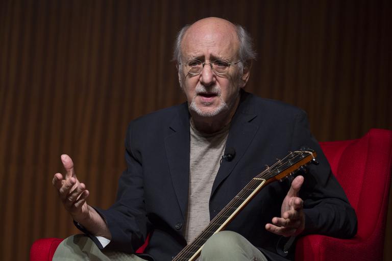 Keywords: winner people indoor Folk singer Peter Yarrow discusses how the protest music of the 1960s and 1970s helped to comfort U.S. troops in Vietnam while fueling the anti-war movement at home. Yarrow participated in the LBJ Presidential Library's Vietnam War Summit on Thursday, April 28, 2016. Yarrow, who performed with his folk group—Peter, Paul and Mary—at the huge 1969 moratorium rally in Washington, D.C. against the Vietnam War, appeared with Country Joe McDonald. McDonald wrote one of the most memorable Vietnam War protest songs, "I Feel Like I'm Fixin' to Die Rag" for his band, Country Joe and the Fish. The music discussion was moderated by Bob Santelli, executive director of the GRAMMY Museum, on Thursday, April 28, 2016, at the LBJ Presidential Library. The event was part of the library’s three-day Vietnam War Summit. LBJ Library photo by David Hume Kennerly 04/28/2016. LBJ Library photo by David Hume Kennerly 04/28/2016. Folk singer Peter Yarrow discusses how the protest music of the 1960s and 1970s helped to comfort U.S. troops in Vietnam while fueling the anti-war movement at home. Yarrow participated in the LBJ Presidential Library's Vietnam War Summit on Thursday, April 28, 2016. Yarrow, who performed with his folk group—Peter, Paul and Mary—at the huge 1969 moratorium rally in Washington, D.C. against the Vietnam War, appeared with Country Joe McDonald. McDonald wrote one of the most memorable Vietnam War protest songs, "I Feel Like I'm Fixin' to Die Rag" for his band, Country Joe and the Fish. The music discussion was moderated by Bob Santelli, executive director of the GRAMMY Museum, on Thursday, April 28, 2016, at the LBJ Presidential Library. The event was part of the library’s three-day Vietnam War Summit. LBJ Library photo by David Hume Kennerly 04/28/2016. LBJ Library photo by David Hume Kennerly 04/28/2016.