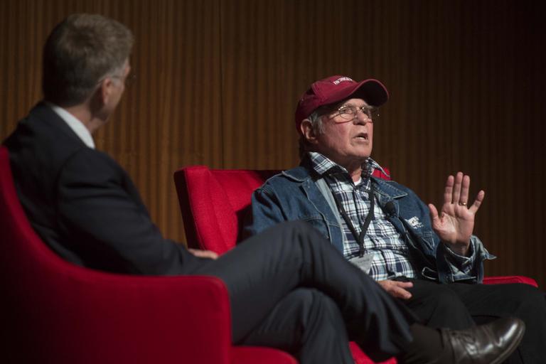 Keywords: austin texas indoor Singer/songwriter Country Joe McDonald, right, a Navy veteran and Vietnam War protester, discusses how the music of the 1960s and 1970s helped to comfort U.S. troops in Vietnam while fueling the anti-war movement at home. He spoke on Thursday, April 28, 2016, at the LBJ Presidential Library's Vietnam War Summit. McDonald also performed one of his most popular Vietnam War protest songs, "I Feel Like I'm Fixin' to Die Rag" as well as "Superbird." He was joined by folk singer Peter Yarrow, who used to perform with folk group Peter, Paul and Mary. Yarrow sang "Where Have All the Flowers Gone?" The music discussion was moderated by Bob Santelli, left, executive director of the GRAMMY Museum. LBJ Library photo by Marsha Miller 04/28/2016. Singer/songwriter Country Joe McDonald, right, a Navy veteran and Vietnam War protester, discusses how the music of the 1960s and 1970s helped to comfort U.S. troops in Vietnam while fueling the anti-war movement at home. He spoke on Thursday, April 28, 2016, at the LBJ Presidential Library's Vietnam War Summit. McDonald also performed one of his most popular Vietnam War protest songs, "I Feel Like I'm Fixin' to Die Rag" as well as "Superbird." He was joined by folk singer Peter Yarrow, who used to perform with folk group Peter, Paul and Mary. Yarrow sang "Where Have All the Flowers Gone?" The music discussion was moderated by Bob Santelli, left, executive director of the GRAMMY Museum. LBJ Library photo by Marsha Miller 04/28/2016.