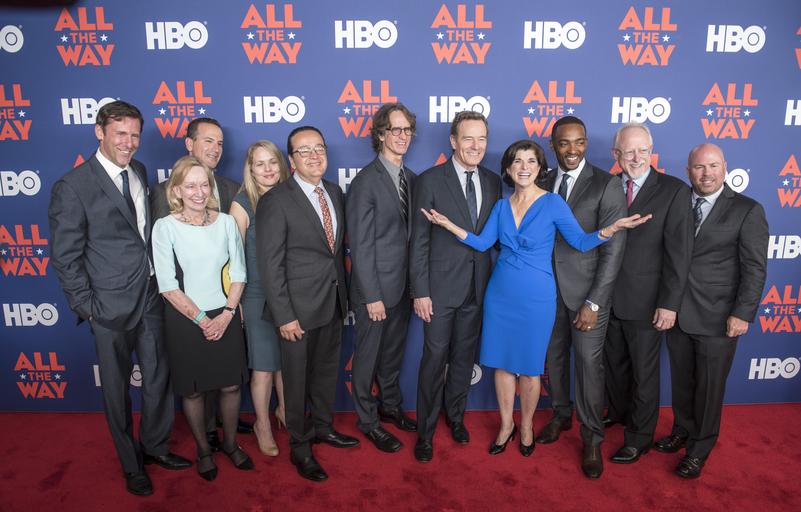 | Keywords: dig13890-080.nef dig13890080nef austin tx usa Mark Updegrove, left, Doris Kearns Goodwin, Darryl Frank, Tara Grace, Len Amato, Jay Roach, Bryan Cranston, Luci Baines Johnson, Anthony Mackie, Robert Schenkkan and Justin Falvey on the red carpet.  In conjunction with HBO and the LBJ School of Public Affairs, the LBJ Library held a special preview screening and discussion of the new HBO film "All the Way" starring Bryan Cranston in his Tony Award-winning role as Lyndon Johnson and Anthony Mackie as Martin Luther King, Jr. Following the screening of the film, writer Robert Schenkkan, director Jay Roach, actors Bryan Cranston and Anthony Mackie, and historian and consultant on the film Doris Kearns Goodwin, joined Library Director Mark Updegrove on stage for a discussion. The film will debut on HBO on May 21, 2016.  LBJ Library photo by Jay Godwin Mark Updegrove, left, Doris Kearns Goodwin, Darryl Frank, Tara Grace, Len Amato, Jay Roach, Bryan Cranston, Luci Baines Johnson, Anthony Mackie, Robert Schenkkan and Justin Falvey on the red carpet.  In conjunction with HBO and the LBJ School of Public Affairs, the LBJ Library held a special preview screening and discussion of the new HBO film "All the Way" starring Bryan Cranston in his Tony Award-winning role as Lyndon Johnson and Anthony Mackie as Martin Luther King, Jr. Following the screening of the film, writer Robert Schenkkan, director Jay Roach, actors Bryan Cranston and Anthony Mackie, and historian and consultant on the film Doris Kearns Goodwin, joined Library Director Mark Updegrove on stage for a discussion. The film will debut on HBO on May 21, 2016.  LBJ Library photo by Jay Godwin  |