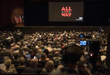| Keywords: dig13890-116.nef dig13890116nef austin tx usa auditorium people crowd hall In conjunction with HBO and the LBJ School of Public Affairs, the LBJ Library held a special preview screening and discussion of the new HBO film "All the Way" starring Bryan Cranston in his Tony Award-winning role as Lyndon Johnson and Anthony Mackie as Martin Luther King, Jr. Following the screening of the film, writer Robert Schenkkan, director Jay Roach, actors Bryan Cranston and Anthony Mackie, and historian and consultant on the film Doris Kearns Goodwin, joined Library Director Mark Updegrove on stage for a discussion. The film will debut on HBO on May 21, 2016.  LBJ Library photo by Jay Godwin In conjunction with HBO and the LBJ School of Public Affairs, the LBJ Library held a special preview screening and discussion of the new HBO film "All the Way" starring Bryan Cranston in his Tony Award-winning role as Lyndon Johnson and Anthony Mackie as Martin Luther King, Jr. Following the screening of the film, writer Robert Schenkkan, director Jay Roach, actors Bryan Cranston and Anthony Mackie, and historian and consultant on the film Doris Kearns Goodwin, joined Library Director Mark Updegrove on stage for a discussion. The film will debut on HBO on May 21, 2016.  LBJ Library photo by Jay Godwin  |