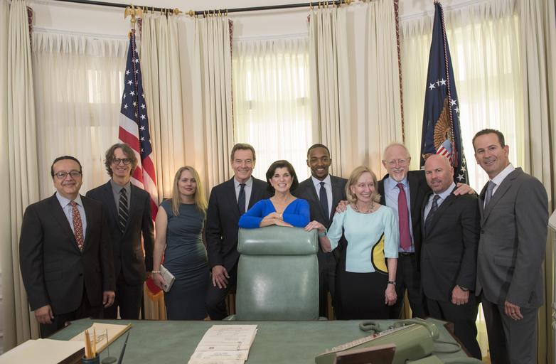 | Keywords: dig13890-162.nef dig13890162nef austin tx usa indoor In conjunction with HBO and the LBJ School of Public Affairs, the LBJ Library held a special preview screening and discussion of the new HBO film "All the Way" starring Bryan Cranston in his Tony Award-winning role as Lyndon Johnson and Anthony Mackie as Martin Luther King, Jr. Following the screening of the film, writer Robert Schenkkan, director Jay Roach, actors Bryan Cranston and Anthony Mackie, and historian and consultant on the film Doris Kearns Goodwin, joined Library Director Mark Updegrove on stage for a discussion. The film will debut on HBO on May 21, 2016.  LBJ Library photo by Jay Godwin In conjunction with HBO and the LBJ School of Public Affairs, the LBJ Library held a special preview screening and discussion of the new HBO film "All the Way" starring Bryan Cranston in his Tony Award-winning role as Lyndon Johnson and Anthony Mackie as Martin Luther King, Jr. Following the screening of the film, writer Robert Schenkkan, director Jay Roach, actors Bryan Cranston and Anthony Mackie, and historian and consultant on the film Doris Kearns Goodwin, joined Library Director Mark Updegrove on stage for a discussion. The film will debut on HBO on May 21, 2016.  LBJ Library photo by Jay Godwin  |