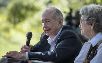 | Keywords: dsc_7082.nef dsc7082nef austin tx usa outdoor Former LBJ Pilot Barney Hulett and his wife Libby Hulett, who was curator at the LBJ National Park. The Lyndon B. Johnson National Historical Park celebrated the 108th anniversary of President Johnson’s birth with a ceremony at 10:00 am on Saturday, August 27. Continuing a tradition that Lady Bird Johnson began in 1973, a wreath was placed at the president’s gravesite in the Johnson family cemetery at the LBJ Ranch by Park Superintendent Russ Whitlock and Brigadier General Heather L. Pringle. After the ceremony, park staff members commemorated the National Park Service Centennial by reading the names of the 47 national park units established during Lyndon Johnson’s presidency. LBJ Library photo by Jay Godwin 08/27/2016 Former LBJ Pilot Barney Hulett and his wife Libby Hulett, who was curator at the LBJ National Park. The Lyndon B. Johnson National Historical Park celebrated the 108th anniversary of President Johnson’s birth with a ceremony at 10:00 am on Saturday, August 27. Continuing a tradition that Lady Bird Johnson began in 1973, a wreath was placed at the president’s gravesite in the Johnson family cemetery at the LBJ Ranch by Park Superintendent Russ Whitlock and Brigadier General Heather L. Pringle. After the ceremony, park staff members commemorated the National Park Service Centennial by reading the names of the 47 national park units established during Lyndon Johnson’s presidency. LBJ Library photo by Jay Godwin 08/27/2016 |