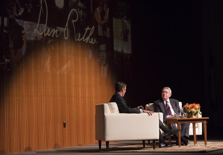 | Keywords: dig13960_123.jpg dig13960123jpg austin tx usa Mark Updegrove, left, and Dan Rather On Tuesday evening November 1st, 2016, veteran journalist Dan Rather joined Friends of the LBJ Library members to speak about his remarkable career spanning six decades in print, radio, and television news. Rather, a native Texan, has covered almost every major news event since the 1960s, including President John F. Kennedy's assassination, the U.S. civil rights movement, the Vietnam War, the Watergate scandal, the fall of the Berlin Wall, and the 9/11 terrorist attacks. He was anchor and managing editor of the CBS Evening News for 24 years. He now serves as president and CEO of News and Guts, an independent production company. The evening was co-hosted by the Dolph Briscoe Center for American History at the University of Texas at Austin. LBJ Library photo by Jay Godwin 11/01/2016 Mark Updegrove, left, and Dan Rather On Tuesday evening November 1st, 2016, veteran journalist Dan Rather joined Friends of the LBJ Library members to speak about his remarkable career spanning six decades in print, radio, and television news. Rather, a native Texan, has covered almost every major news event since the 1960s, including President John F. Kennedy's assassination, the U.S. civil rights movement, the Vietnam War, the Watergate scandal, the fall of the Berlin Wall, and the 9/11 terrorist attacks. He was anchor and managing editor of the CBS Evening News for 24 years. He now serves as president and CEO of News and Guts, an independent production company. The evening was co-hosted by the Dolph Briscoe Center for American History at the University of Texas at Austin. LBJ Library photo by Jay Godwin 11/01/2016 |