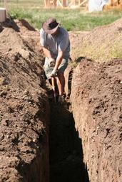 Keywords: digging man work working sewage plumbing shovel dig trench pipe laying