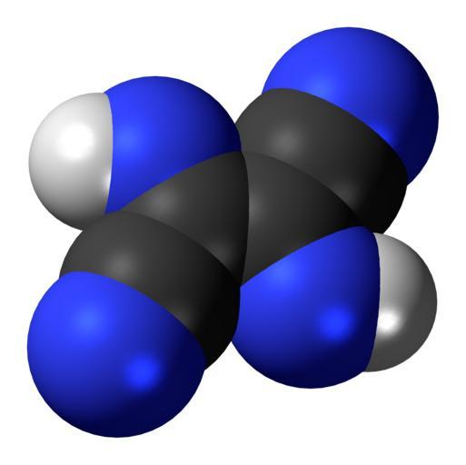 Keywords: Diiminosuccinonitrile-3D-spacefill.png Ball-and-stick model of the diiminosuccinonitrile molecule an experimental nitrogen compound Colour code 505050 Carbon C black<br> F0F0F0 Hydrogen H white<br> 3C50FA Nitrogen N blue<br> 2011-02-02 own DS Visualizer Jynto talk Space-filling version cc-zero Nitriles Imines Images by Jynto Space-filling models |