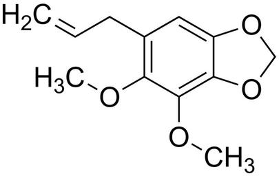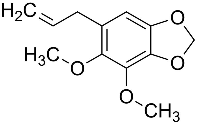 Keywords: Dillapiole 200.svg validSVG Structure of 6-allyl-4 5-dimethoxybenzod1 3dioxole Struktur von 6-Allyl-4 5-dimethoxybenzod1 3dioxol Own 2014-04-11 Emeldir <span class signature-talk >talk</span> Chemical structure verified https //upload wikimedia org/wikipedia/commons/f/f3/Dillapiole_200 svg 1S/C12H14O4/c1-4-5-8-6-9-11 16-7-15-9 12 14-3 10 8 13-2/h4 6H 1 5 7H2 2-3H3 LIKYNOPXHGPMIH-UHFFFAOYSA-N 484-31-1 Synonyms <small>4 5-dimethoxy-6-prop-2-enyl-1 3-benzodioxole 6-Allyl-4 5-dimethoxy-1 3-benzodioxole Apiole Dill Dillapiol Dillapiole</small> PD-chem Benzodioxoles Dimethoxybenzenes Allylbenzenes Phenylpropanoids |