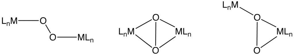 Keywords: Dimetal dioxygen complexes (molecular diagrams).png en structures for dimetal O2 binding Own Smokefoot 2009-07 Inorganic chemistry
