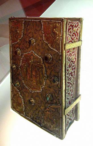 | Keywords: Dimitry Mikhailovch Gospel (Kremlin, 1613) 02.jpg ЕВА ГЕЛИЕ XVI век Оклад 1613 год осква Бумага; че нила темпе а; пе еплет де ево се еб о ткань сапфи ы би юза жемчуг стекло; чеканка че нь езьба канфа ение золочение 45 х 28 5 Поступило в 1920-е годы П оисходит из Соловецкого монасты я вклад князя Димит ия ихайловича К инв Кн-198 own 2011 shakko Exhibition Sainte Russie Moscow 2011 - books Gospel Books covers from Russia 1613 books Uploaded by Shakko/Photos Books in the Museums of Moscow Kremlin Pearl jewellery Dmitry Pozharsky PD-Art |