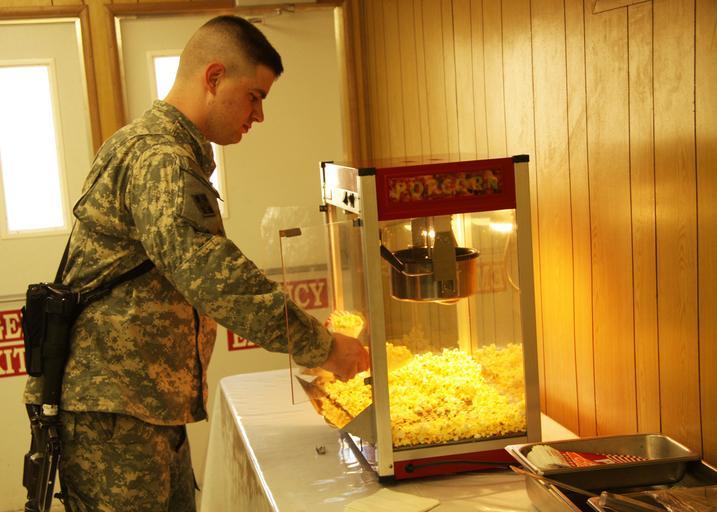 Keywords: Diners at Ironhorse Oasis dining facility welcome new expansion DVIDS131860.jpg en Sgt Joshua Painter a native of Marble Falls Texas who serves as the administrative non-commissioned officer for the deputy commanding general of 4th Infantry Division and Multi-National Division “ Baghdad serves himself some popcorn in the newly completed expansion of the Ironhorse Oasis Dining Facility at Camp Liberty Nov 26 2008-11-26 Sgt Whitney Houston https //www dvidshub net/image/131860 131860 2008-11-27 11 21 BAGHDAD IQ PD-USGov Camp Liberty Images from DoD uploaded by Fæ |