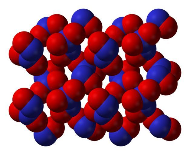 Keywords: Dinitrogen-trioxide-xtal-3D-vdW.png Space-filling model of part of the crystal structure of dinitrogen trioxide N<sub>2</sub>O<sub>3</sub> X-ray diffraction data from cite journal Prof Dr Arndt Simon Jörg Horakh Axel Obermeyer Horst Borrmann 1992 March Crystalline Nitrogen Oxides - Crystal Structure of N<sub>2</sub>O<sub>3</sub> and a Remark Concerning the Crystal Structure of N<sub>2</sub>O<sub>5</sub> Angewandte Chemie International Edition in English 31 3 301-303 10 1002/anie 199203011 Own 2008-05-04 Ben Mills Benjah-bmm27 Images by Ben Mills Space-filling models Crystal structures of oxides Dinitrogen trioxide |