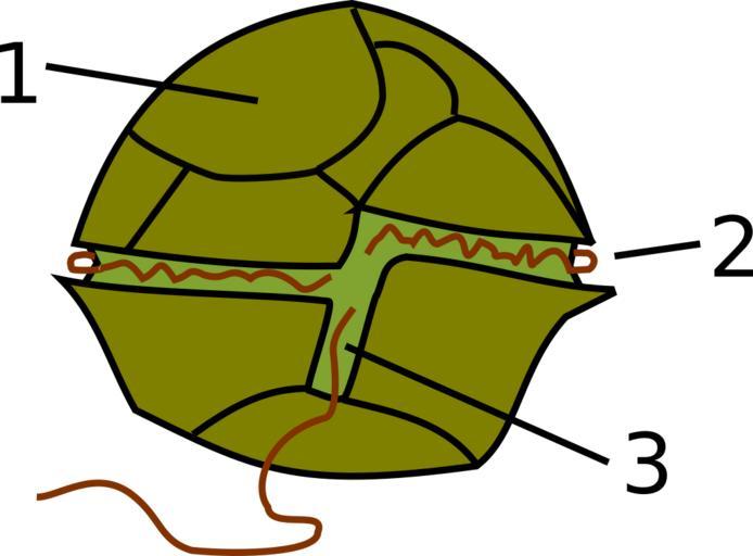 Keywords: Dinoflagellata theca cingulum sulcus.svg Dinoflagellata 1-theca 2-cingulum 3-sulcus self-made with http //www xfig org xfig en Linux 2007-08-31 Franciscosp2 Dinoflagellata