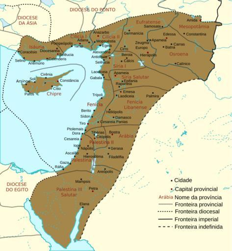 Keywords: Dioecesis Orientis 400 AD-pt.svg Pt Mapa da Diocese do Oriente Dioecesis Orientis ca 400 mostrando províncias subordinadas e as principais cidades Nota O exato curso das fronteiras provinciais é muito incerto e em muitos casos é apenas aproximado 2014-01-07 02 31 51 own Renato de carvalho ferreira cc-zero Uploaded with UploadWizard Maps of the Byzantine Levant Maps of Byzantine provinces Maps of Palestine in the 4th century