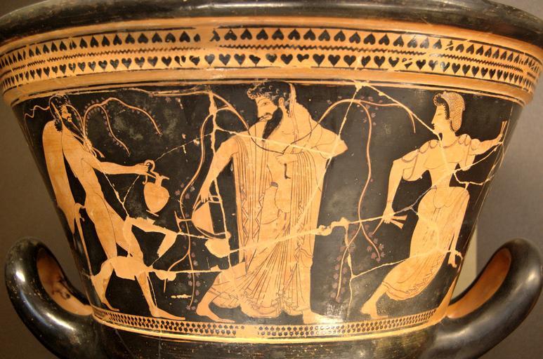 MAKE A MEME View Large Image Dionysos Louvre CA5950.jpg Dionysos silenus and maenad Side B from an Attic red-figure calyx-krater 520 “510 BC Dionysos silène et mĂ©nade Face B d'un cratère en calice attique Ă  figures rouges v 520-510 av J -C H 36 50 cm; D 46 cm ...