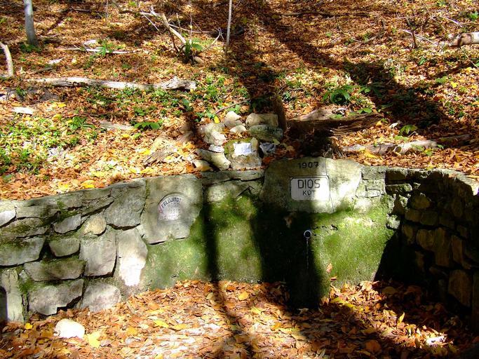 Keywords: Diós-kút Mecsek.JPG A Diós-kút a Mecsekben Püspökszentlászló közelében Az 1907-ben kiépített forrást 1963-ban újította fel Csokonay Sándor közreműködésével a Vasas Elektromos Természetjáró Szakosztály own photo 2010 own photo Cc-zero Springs of Mecsek Autumn in Hungary