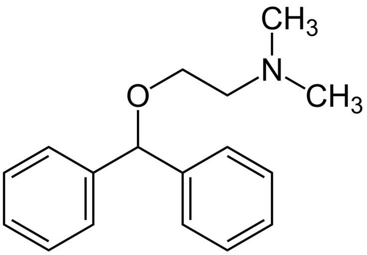 Keywords: Diphenhydramine.svg chemical structure of Diphenhydramine made using BKchem Own 2007-02-14 User Bryan Derksen Diphenhydramine