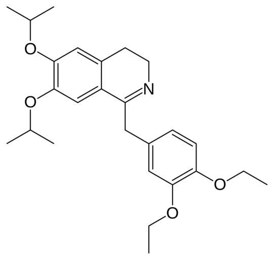 Keywords: Diproteverine.svg Skeletal formula of diproteverine Created using http //www acdlabs com/download/chemsk html ACD/ChemSketch 8 0 and http //www inkscape org Inkscape Own 2007-05-12 Fvasconcellos 20 10 12 May 2007 UTC Calcium channel blockers Isoquinolines Phenol ethers |