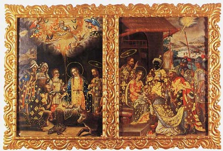 | Keywords: Diptico Gaspar Miguel de Berrio.jpg  en Diptic The adoration of the shepherds The adoration of the Three Kings Potosí s XVIII National Art Museum La Paz Bolivia Latinamerican baroque es Dipctico de La adoración de los pastores y La adoración de los Reyes Magos Potosí siglo XVIII colección del Museo Nacional de Arte La Paz Bolivia Su autor Gaspar Miguel de Berrío es considerado uno de los principales miembros de la llamada Escuela de Potosí el mayor núcleo de creacción pictórica barroca de Alto Perú la actual Bolivia Museo Nacional de Arte La Paz http //www mna org bo/foto-33 jpg creator Gaspar Miguel de Berrío century 18 oil canvas cm 84 64 and cm 84 61 Museo Nacional de Arte La Paz object history exhibition history credit line accession number PD-old-100-1923 Museo Nacional de Arte Bolivia Gaspar Miguel de Berrío 18th-century paintings of the Adoration of the Magi |