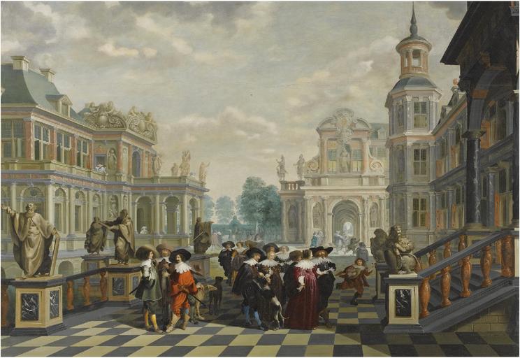 Keywords: Dirck van Delen - An Elaborate Palace Courtyard With Elegant Company.jpg Artwork Creator Dirck van Delen other date ~ 1635 Oil on panel size cm 116 5 166 7 Private collection accession number object history credit line Auctioned at Sotheby's on 8 December 2010 in London lot 20 http //www sothebys com/en/auctions/ecatalogue/lot 20 html/2010/old-master-british-paintings-evening-sale-l10036 PD-old-100 Dirck van Delen 17th-century paintings in unidentified private collections 1635 paintings 17th-century oil on canvas paintings 1630s paintings in private collections Oil paintings of buildings and structures |