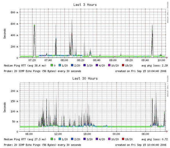 Keywords: Disa.JPG en A screenshot of Smokeping es Imagen Smokeping fr Une capture d'écran du logiciel Smokeping 2006-09-15 own Tobi Oetiker and Niko Tyni / Screenshot taken by User Peteww Free screenshot GPL Unidentified graphs
