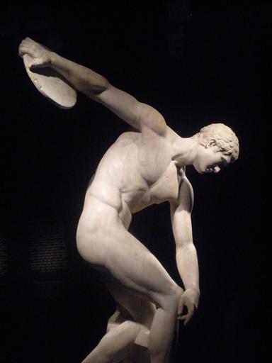 | Keywords: Discobolo 4.jpg Discobolus Marble Roman copy after a bronze original of the 5th century BC From the Villa Adriana near Tivoli Italy Estatua de mármol Copia romana del siglo II de un original de bronce circa 450-440 a C atribuido a Mirón Proveniente de la villa del emperador romano Adriano cerca de Tívoli Italia Discobole Marbre copie romaine d'après un original en bronze du Ve siècle av J -C attribué à Myron Provenance Villa Adriana près de Tivoli Discobolo Marmo copia romana da un originale in bronzo del V sec a C da Mirone Da Villa Adriana presso Tivoli H 1 69 m 5 ft 6 ¾ in W 1 05 m Museum British Museum Main staircase This photo's taken in the Museo Arqueológico de Alicante Temporal exhibition object history credit line Former Townley Collection accession number GR 1805 7-3 43 Cat Sculpture 250 Dorieo other versions own Dorieo 2009-04-16 thumb Discobolo en el MARQ |