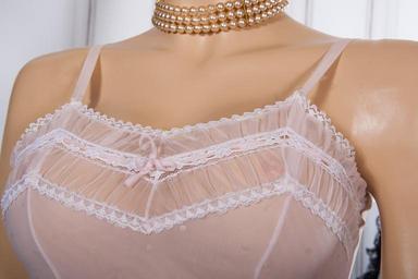 Keywords: 1950's shell pink transparent Perlon full slip. Tried on and modeled by yours truly and my verdict is "outrageously sexy". perlon perlonslips perlonfullslip seethroughslip seethroughnylonlingerie seethroughnylon