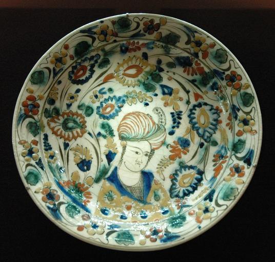 | Keywords: Dish youth Louvre D27779.jpg Dish with portrait of a youth Plat au jeune homme century 17 fritware glaze transparent paint decoration painted slip cm 35 Institution Louvre object department Islamic art object history Provenance Kubacha in Iran credit line accession number D 27779 own Marie-Lan Nguyen 2006 other versions Ceramic plates 17th-century ceramics Ceramics of Iran in the Louvre Objects with black background Human figuration in Islamic art Kubachi ware | ||||