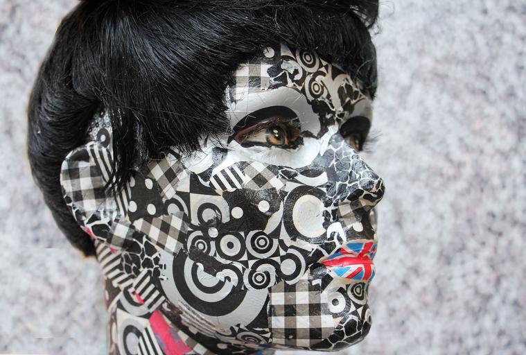 Keywords: display dummy doll decoration head face pattern portrait woman patterns in the face art female united kingdom flag of united kingdom