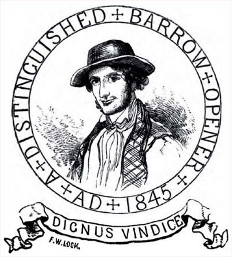 | Keywords: Distinguished Barrow Opener, 1845, Self portrait by F. W. Lock, Worthy Protector in Latin.jpg en Circular Seal drawn in ink by F W Lock Lock's self portrait surrounded by a ring inscribed A Distinguished Barrow Opener A D 1845 with a ribbon beneath inscribed Dicnus Vindice Worthy Protector ; artwork signed F W Lock 1845-xx-xx https //archive org/details/vestigesantiqui00glovgoog Bateman Thomas Vestiges of the Antiquities of Derbyshire and the Sepulchral Uses of its Inhabitants from the Most Remote Ages to the Reformation John Russell Smith Pub 1845 image found opposite page 1 other versions Derbyshire England UK PD-Art Artists by name Uploaded with UploadWizard |