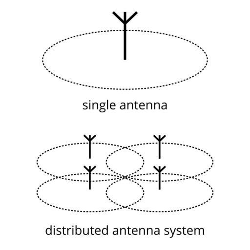 Keywords: Distributed-antenna-system.svg en A diagram with English labels contrasting a single antenna setup with a DAS https //en wikipedia org/wiki/File Das_basic JPG 2014-02-19 22 12 05 own Todrobbins cc-zero Uploaded with UploadWizard Distributed antenna systems |
