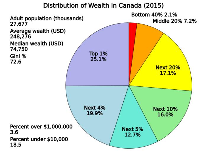 Keywords: Distribution of Wealth in Canada.svg translate yes en Wealth shares of different percentile groups in Canada in 2015 Data from Credit Suisse http //publications credit-suisse com/tasks/render/file/index cfm fileid C26E3824-E868-56E0-CCA04D4BB9B9ADD5 Table 6-5 Page 149 2016-07-20 own Delphi234 other versions cc-zero Distribution of wealth Economic inequality SVG pie charts |
