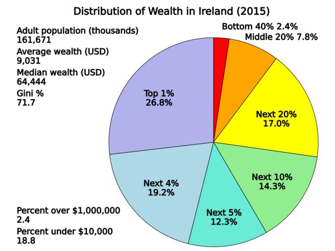 Keywords: Distribution of Wealth in Ireland.svg translate yes en Wealth shares of different percentile groups in Ireland in 2015 Data from Credit Suisse http //publications credit-suisse com/tasks/render/file/index cfm fileid C26E3824-E868-56E0-CCA04D4BB9B9ADD5 Table 6-5 Page 149 2016-07-20 own Delphi234 other versions cc-zero Distribution of wealth Economic inequality SVG pie charts |
