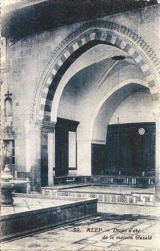 | Keywords: Divan D'été de la maison Gazalé - Alep - Bretocq 1918-1922.jpg fr Divan D'été de la maison Gazalé - Alep - Bretocq 1918-1922 1922-10-01 Scan of old postcard Abbé Gabriel Bretocq 1873-1961 photos from journey through the Orient 1918-1922 other versions 36 206648 37 156528 Ghazaleh House is one of the foremost examples of 17th century Ottoman architecture in Aleppo It is located just outside the old city of Aleppo in one of the most prestigious and touristic areas of the city the Jdeideh neighbourhood Beside traditional elements like the beautiful courtyard the fountain and the carved decorative stones it boasts also well-preserved and high-quality wooden panels and ” unique feature in Ottoman Aleppo ” a large private hammam The house has been described in several publications about the old city of Aleppo and was used as a school in the 1970s This state-owned mansion has been recently restored and transformed into a museum of the City of Aleppo by the DGAM Directorate General of Antiquities and Museums and the Municipality of Aleppo PD-old-70-1923 PD-Syria Ancient City of Aleppo Beit Ghazaleh Postcards of Aleppo Monuments and memorials in Syria Uploaded with UploadWizard Bayt Ghazala Hammam |