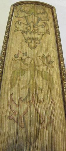 Keywords: Divi Dionysii Carthusiani in Sententiarum Librum I.(-IV.) commentarii locupletissimi. -With the text.- (D. Dionysii Carthusiani vitæ gesta ac sanctimonia -by T. Loer-. Index ac elucidatio di - Tail edge (low resolution) (C48h3).jpg Style Armorial Centre and cornerpiece; Caption Tail edge low resolution ; Colour Brown; Edge Painted exhibition history Decorative Technique Tooled in blind Tooled in gold; Cover Material Calf Stuart coat of arms with label of difference indicating Prince of Wales provenance object history Text 1584; Venice; Stuart coat of arms object type Cc-zero place of creation Binding England place of discovery Unspecified British Library image http //www bl uk/catalogues/bookbindings/LargeImage aspx RecordId 020-000019360 ImageId ImageId 57668 Copyright BL Divi Dionysii Carthusiani in Sententiarum Librum I -IV commentarii locupletissimi With the text D Dionysii Carthusiani vitæ gesta ac sanctimonia by T Loer Index ac elucidatio dictionum ac dictorum quorundam magis difficilium in Theologia collectus ex opere P Armandi Venetiis 1584 Uploaded with GWToolset Divi Dionysii Carthusiani in Sententiarum Librum I -IV commentarii locupletissimi With the text D Dionysii Carthusiani vitæ gesta ac sanctimonia by T Loer Index ac elucidatio di - Tail edge low resolution C48h3 http //www webarchive org uk/bldatasets/bindings/c48h3tail jpg Bookbinding 17th-century bookbinding British Library Bookbindings |