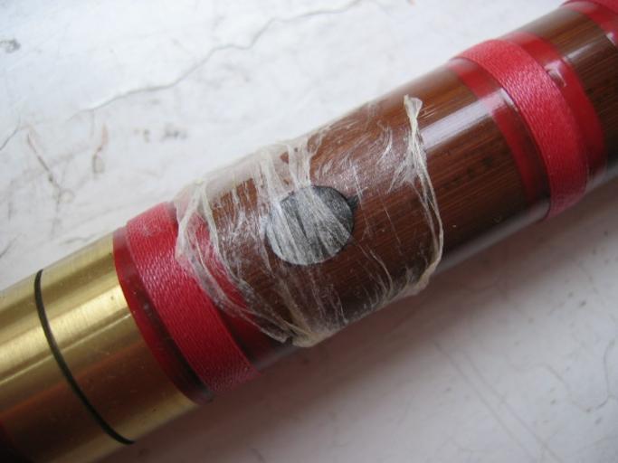 | Keywords: Dizi2.JPG own photo 2006 di 笛 Pinyin dí aka dizi 笛子 Pinyin dízi aka Chinese bamboo flute 中国竹笛 Pinyin zhōng guó zhú dí aka Chinese membrane flute 中国 笛 Pinyin zhōng guó mó dí ; close-up of membrane hole with membrane of onion skin the poor European's substitute Dizi Bamboo in use 2006-04-02 own assumed Bero |