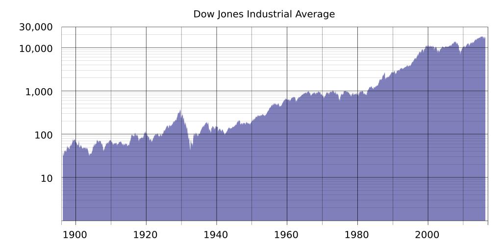 | Keywords: DJIA historical graph (log).svg translate yes Same as en Image DJIA historical graph svg except logarithmic rather than linear Log<sub>10</sub> applied to all values From May 1896 - Dec 1900 monthly closings; Source http //www wrenresearch com au/downloads/files/mdowj csv From Jan 4 1901 - Dec 30 2011 daily closings; Source http //www econstats com/eqty/eq_d_na_4 csv From Jan 3 2012 - present; Source https //finance yahoo com/q/hp s 5EDJI+Historical+Prices See also Linear version en wikipedia 2007-05-06 Lalala666 wikipedia en DJIA historical graph log -2008-29-10 svg Lalala666 original upload log page en wikipedia DJIA_historical_graph_ 28log 29 svg 2007-05-06 03 17 Lalala666 800×400×0 670977 bytes Less precision maybe the SVG rasterizer will like this one better / 2007-05-06 03 08 Lalala666 800×400×0 800817 bytes Same as Image DJIA historical graph svg except logarithmic rather than linear Log<sub>10</sub> applied to all values Daily closings from Jan 4 1901 to Apr 27 2007 Dow Jones Industrial Average graphs Great Depression statistics |