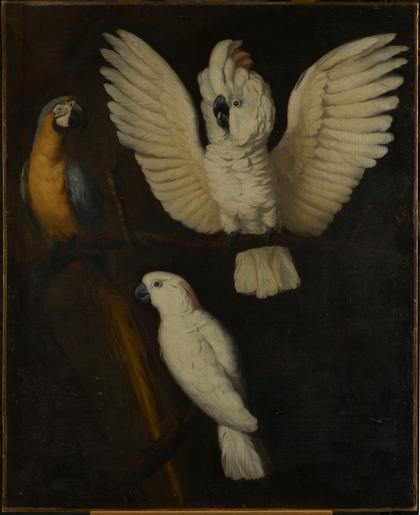 | Keywords: Djurbild. Fåglar, papegoja - Skoklosters slott - 89018.tif Två vita kakaduor samt en blå och en gul amazonpapegoja Mörk bakgrund Möjligen spisöverstycke <br/><br/>Parrots <br/>The painting depicts two white cockatoos and one amazon parrot in a tree The dark background and the composition of the birds give the painting a study-like expression <br/>The white cockatoos are to be found in Southeast Asia while the third bird originates from South America The painting was maybe executed in Amsterdam one of the few places in the world where two such rare birds could meet at that time We know for certain through his correspondence that Wrangel ordered a bird of this kind as a gift for his wife and maybe it is one of these original caption Djurbild Fåglar papegoja <br/> Nyckelord Papegojor Målning Tavla Föremålsbild ca 1670 oil on canvas size mm 880 1090 SKO Carl Gustaf Wrangel place of origin original filename sm_dig5414 21790 inventory number SKO 459 89018 PD Samuel Uhrdin Samuel Uhrdin Media contributed by LSH unmatched objKeyword Media contributed by LSH unmatched keyword Media contributed by LSH 2013-10 |