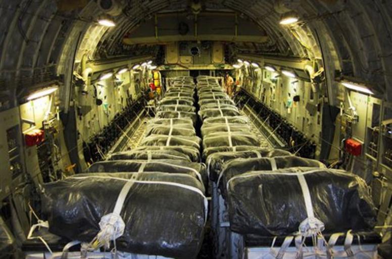 Keywords: DLA Troop Support provides meals, water for Iraq humanitarian mission 140813-D-xx999-001.jpg en Pallets of bottled water are loaded aboard a U S Air Force C-17 Globemaster III aircraft in preparation for a humanitarian airdrop over Iraq DLA Troop Support has purchased 7 000 cases of Halal meals and 19 000 cases of bottled water in support of the humanitarian mission 2014-08-13 U S Air Force photo by Staff Sgt Vernon Young Jr https //www dvidshub net/image/1503696 140813-D-xx999-001 2014-08-14 14 55 IQ PD-USGov Boeing C-17 Globemaster III Images from DoD uploaded by Fæ |