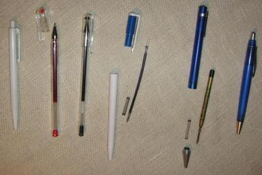 | Keywords: Dlugopisy-RozneWykonania.jpg some various ballpens 2005-06-06 own assumed Julo Various pens Far left Retractable pen Second from left non retractable pen with red ink and the cap off Third from left non retractable pen with black ink and the cap on Fourth from left disassembled retractable pen showing spring and clear ink cartridge Fifth from left disassembled retractable pen showing spring and larger non transparent ink cartridge Far right Retractable pen Różne wykonania długopisów pierwszy od lewej - kompletny długopis ze sprężynowym mechanizmem wysuwającym i chowającym wkład rurkę z tuszem drugi i trzeci od lewej z czerwonym i czarnym tuszem - bez mechanizmu chowania wkładu z tuszem - końcówka zakrywana jest kapturkiem czwarty i piąty od lewej - rozłożone długopisy ze sprężynowaymi mechanizmami wysuwania i chowania; widoczna różnica w budowie wkładu - w czwartym jest to cienka przezroczysta rurka jednakowej średnicy na całej długości w piątym rurka jest grubsza ta akurat nie jest przezroczysta przez co mieści więcej tuszu ostatni z prawej - podobnie jak pierwszy z lewej derivative works Dlugopisy-RozneWykonania-2 jpg Ballpens |