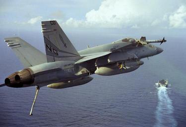 | Keywords: unknown aircraft vehicle outdoor airplane .330-CFD-DN-SC-04-08802:   An F-18C Hornet from Strike Fighter Squadron 147 (VFA-147) "Argonauts," Naval Air Station (NAS) Lemoore, California simulates a landing approach to the carrier USS Nimitz (CVN 68), ported at North Island, California. The Hornet is armed with AIM-9 Sidewinders and AGM-65 Mavericks. Exact date photo taken unknown, 9/16/1996.  (OPA-NARA II-8/19/2015). .330-CFD-DN-SC-04-08802:   An F-18C Hornet from Strike Fighter Squadron 147 (VFA-147) "Argonauts," Naval Air Station (NAS) Lemoore, California simulates a landing approach to the carrier USS Nimitz (CVN 68), ported at North Island, California. The Hornet is armed with AIM-9 Sidewinders and AGM-65 Mavericks. Exact date photo taken unknown, 9/16/1996.  (OPA-NARA II-8/19/2015). |